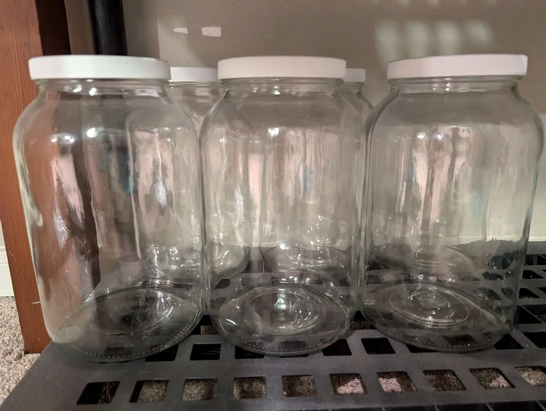 These jars previously held refrigerated kimchi. They have since been washed and stored.